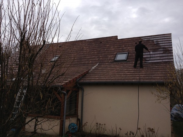 Nettoyage de toiture, pignon, façade... et traitement avec produit professionnel garantie 5 ans